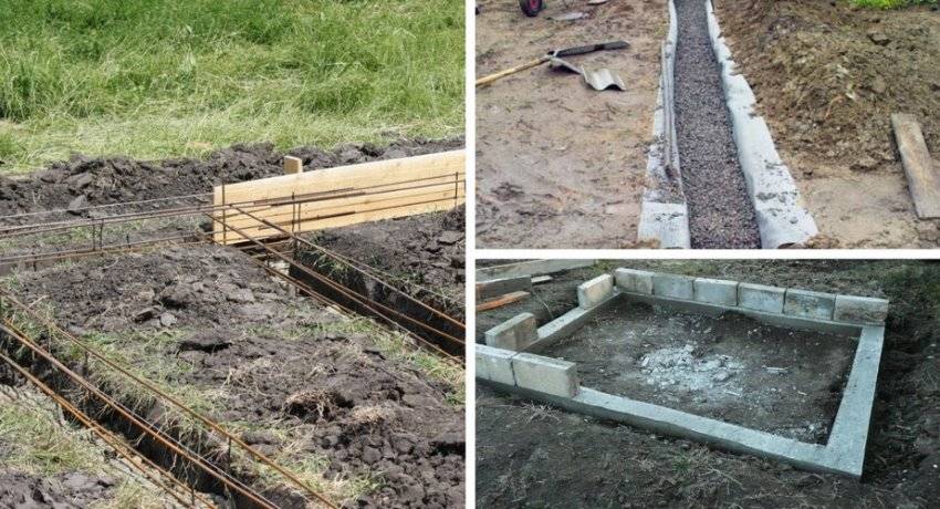 - Постройка основания для установки мангала. Фундамент может быть, как отдельным, так и общим с постройкой. Работа трудоемкая, но ее необходимо сделать до возведения стен, так как печка монтируется ранее.