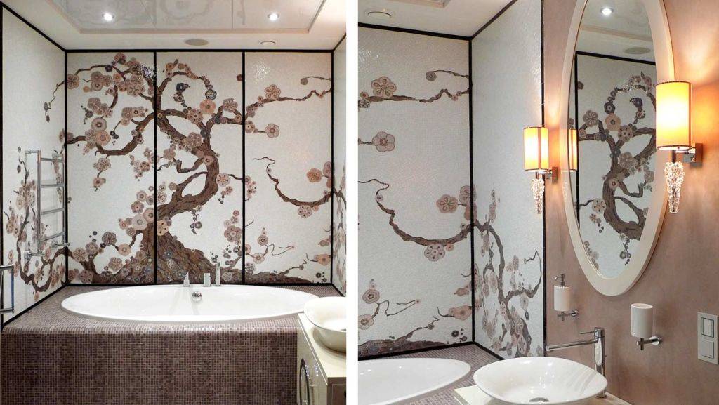Благодаря такому художественному оформлению ваша ванная комната будет выглядеть элегантно и радовать ваш глаз долгие годы.